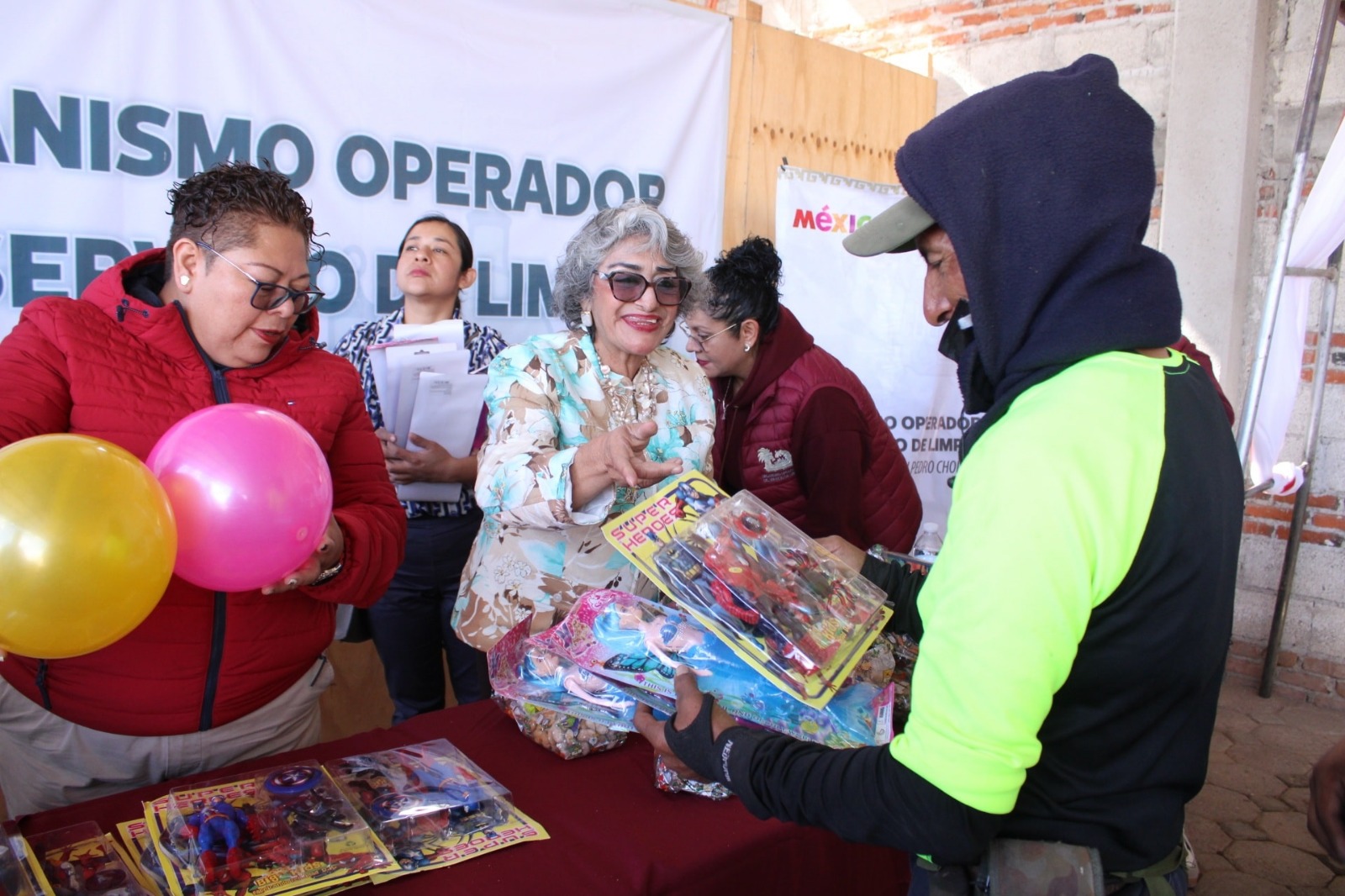 Durante los recorridos realizados en días pasados, se entregaron obsequios como un gesto de agradecimiento a personal del Sistema Operador del Servicio de Limpia, Servicios Públicos Generales, SOSAPACH y la Secretaría de Seguridad Ciudadana.