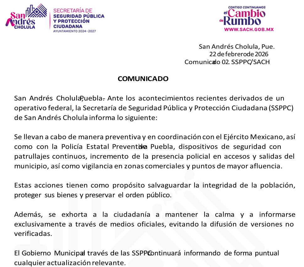 San Andrés Cholula, Puebla.- Ante los acontecimientos recientes derivados de un